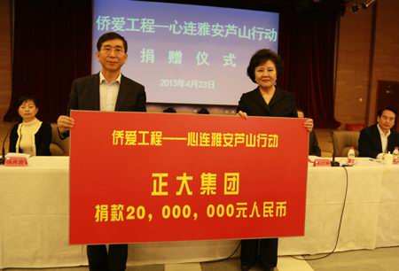 正大为雅安灾区捐款2000万元