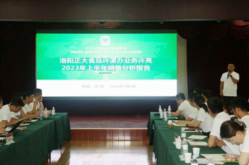 2023年7月8日,洛阳正大上半年工作总结会议在五楼会议室隆重召开,正大集团河南区猪肉食品事业副总裁、WB.COM万搏总经理沈道华、生产与行政外围主管及全体销售人员参加会议。